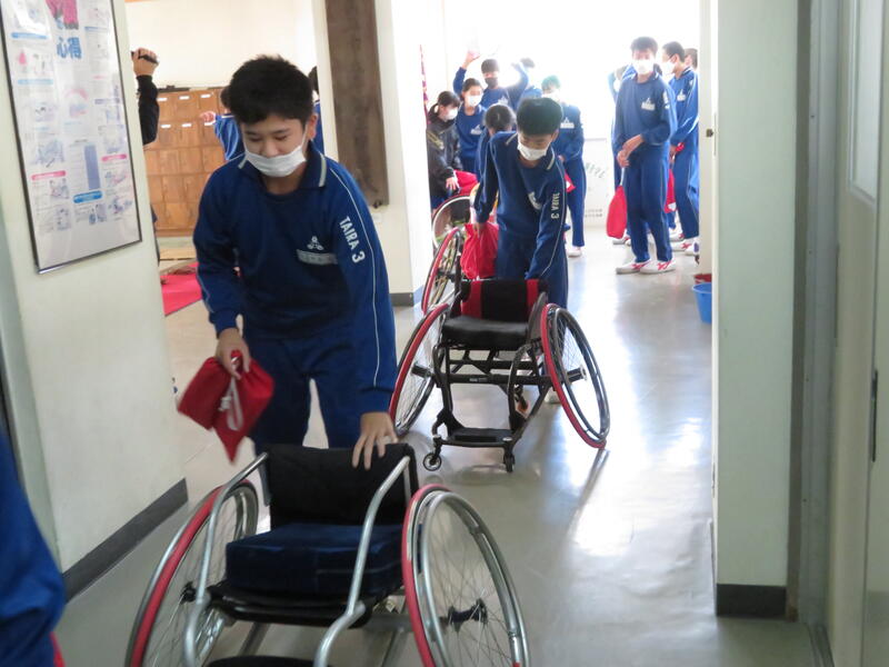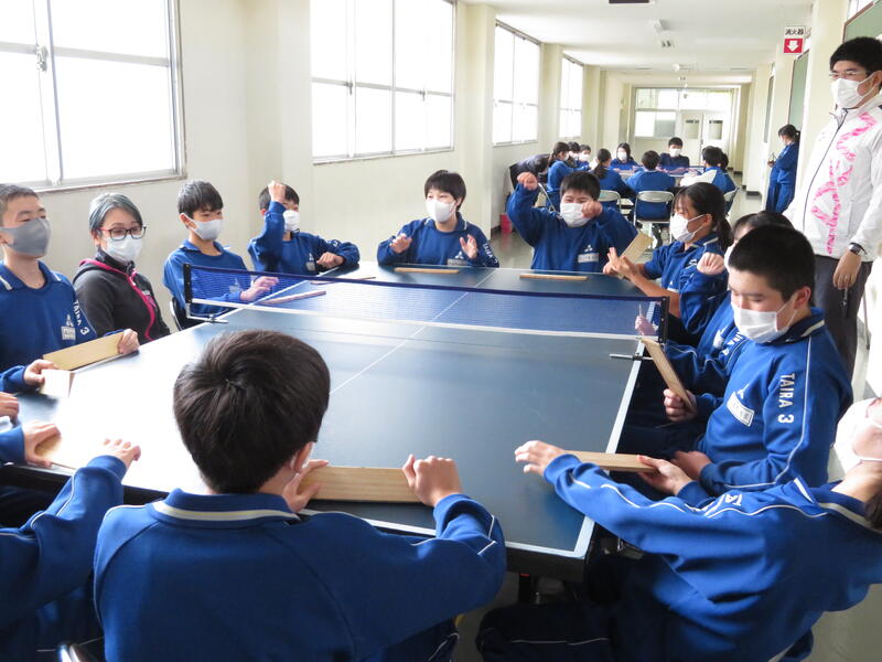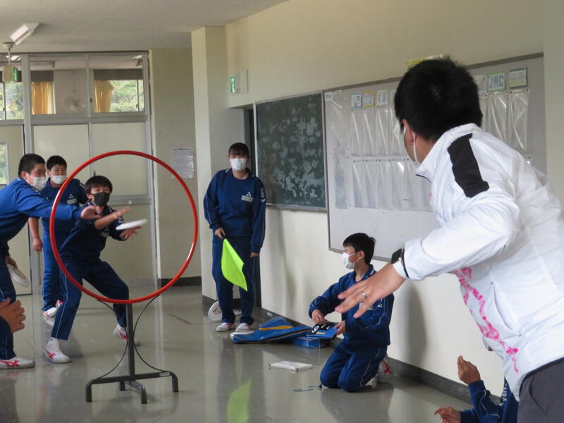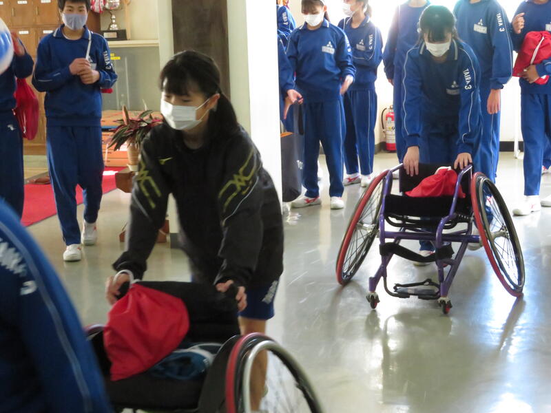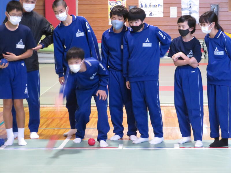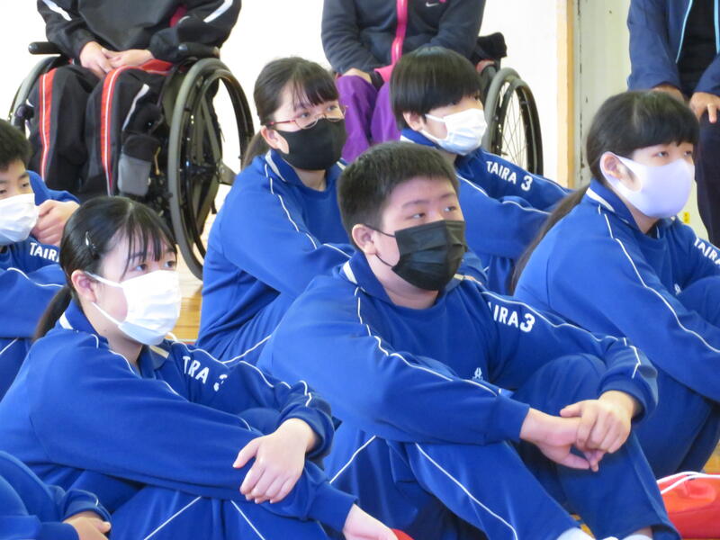 今年度は、いわきサン・アビリティーズ(障がい者教養文化体育施設)の施設長さんをはじめ職員の方々にご協力いただき、1年生が5つのパラスポーツ体験会を行いました。