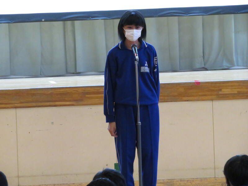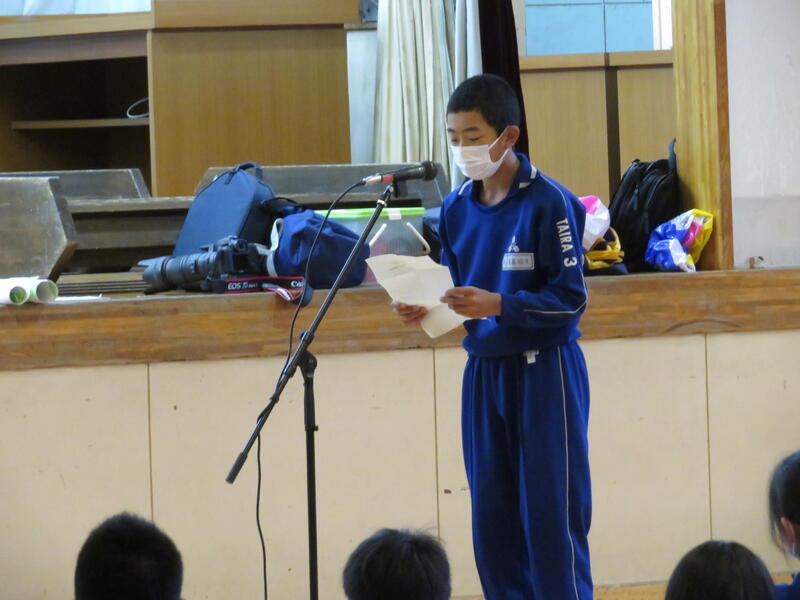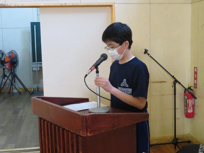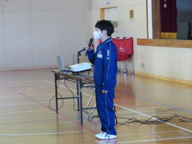 今週はPTAあいさつ運動が行われていますが、本日の放送朝会の講話も「あいさつ」のお話でした。講話の当番は3学年です。