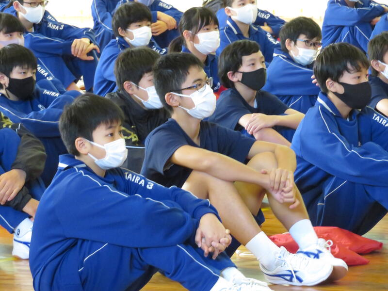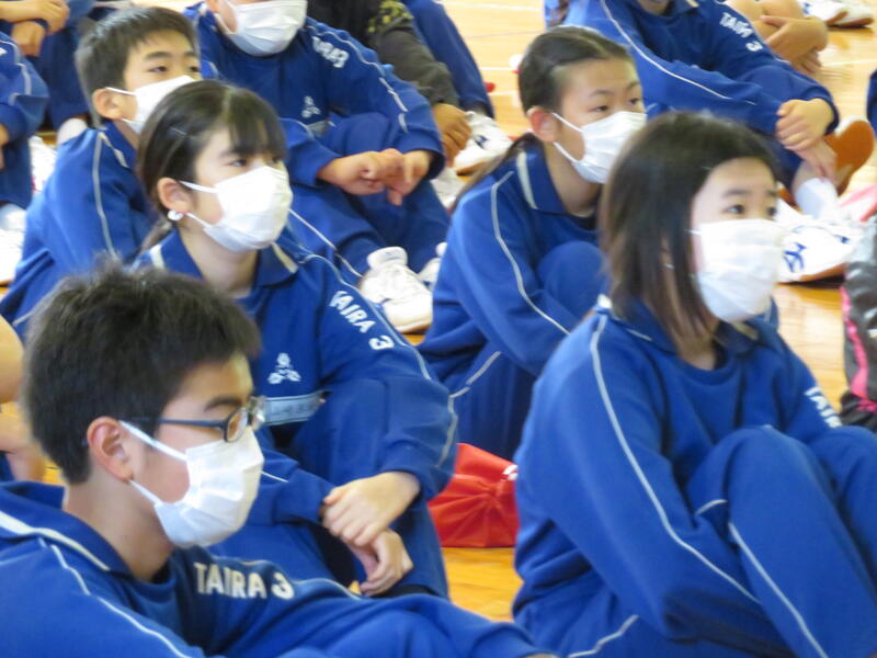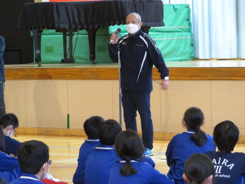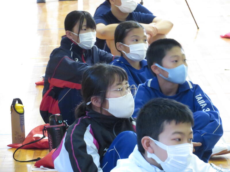それぞれのスポーツが「楽しかった」という子どもたちに対して、「パラスポーツは障がい者のためのスポーツではない。だれでも楽しむことができる。用具やルールを障がい者でも楽しめるように工夫しただけ」というお話。共生社会実現のための視点は、わたしたちの生活の様々なところにあります。そこに気づけるかどうかですね。最後に、家庭で話題にしてくださいというメッセージがありました。
