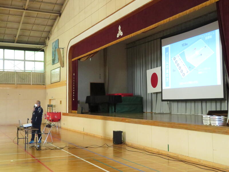 施設長の菅野様から「まずは、楽しんでください」というお話で、本日体験する5つのスポーツについて説明していただきました。