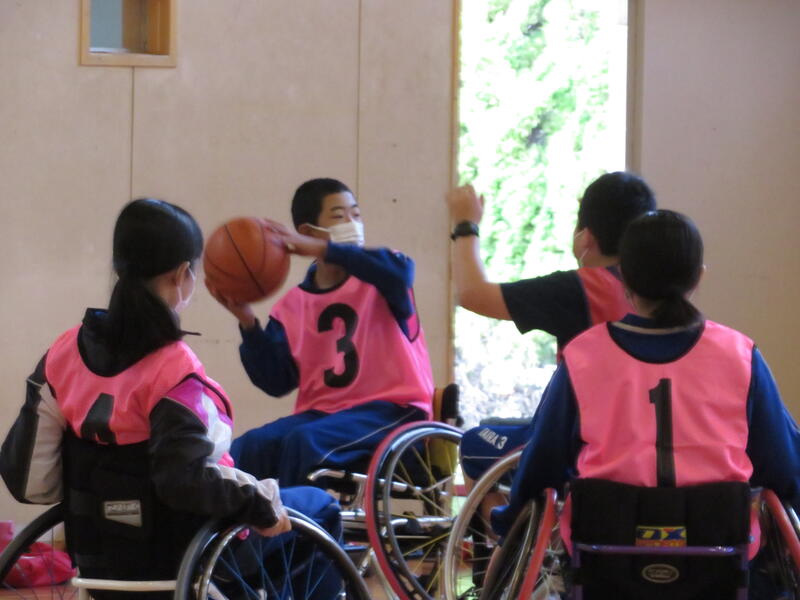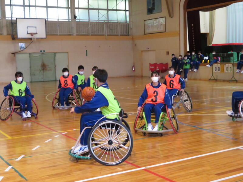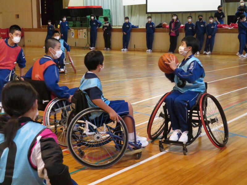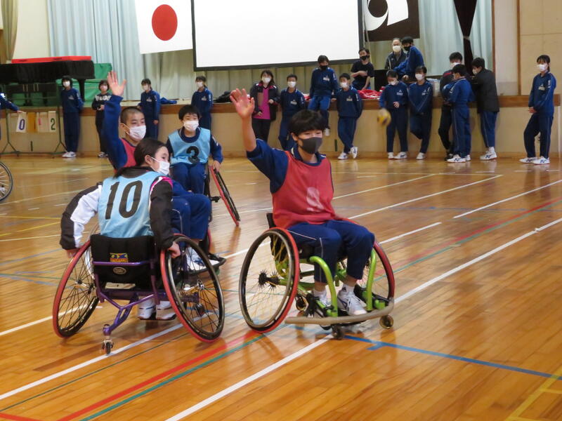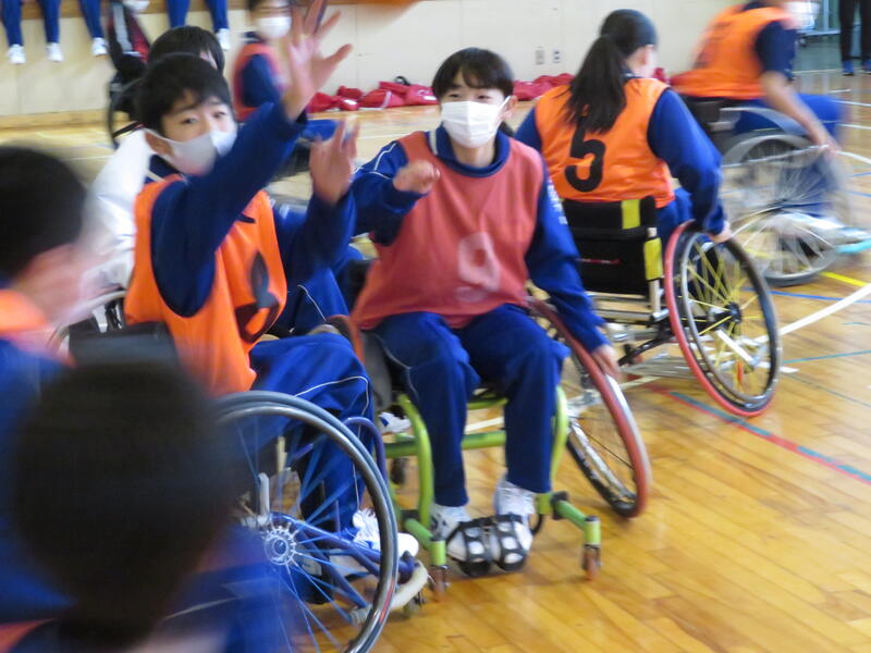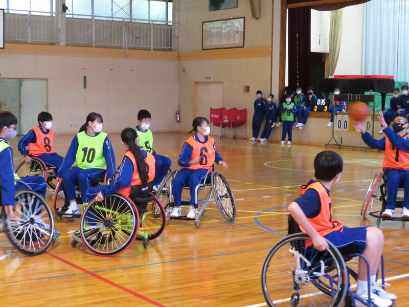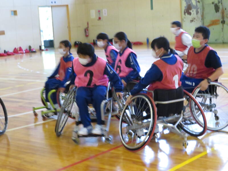 この日は 、いわきサン・アビリティーズ様のご厚意により、どのクラスも5つのパラスポーツを体験させていただきました。①車いすバスケットボール、②シッテイングバレーボール、③ボッチャ、④卓球バレーボール、⑤フライングディスクの5種目です。