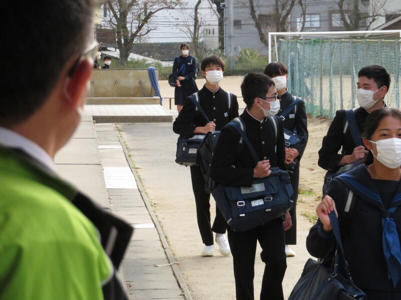 今朝は、PTA本部役員、3学年の総務・補導委員の皆様にご協力いただきました。ありがとうございます。新型コロナウイルスの影響により多くのPTA行事が中止等になっていますが、できることを継続していきたいと思います。