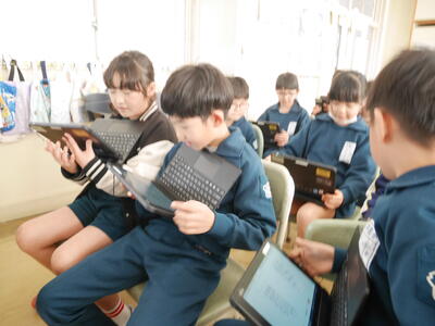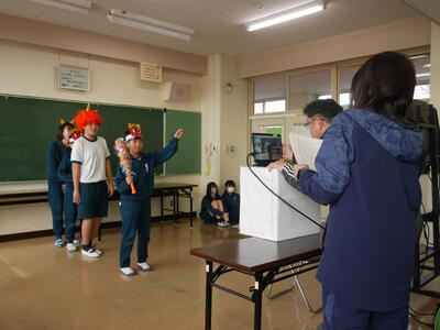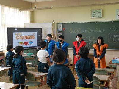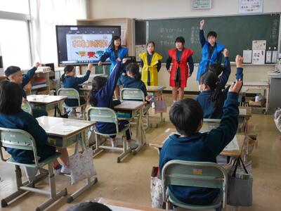 5年生が各教室に行き、「エア豆まき」で「心のおに」を追い出してくれました。ありがとう5年生!!