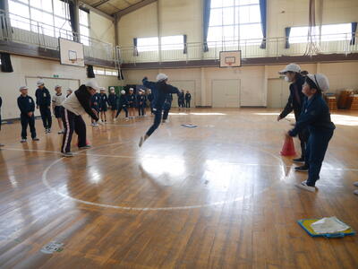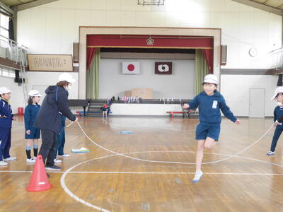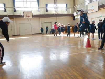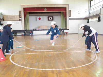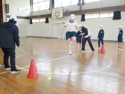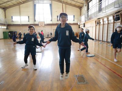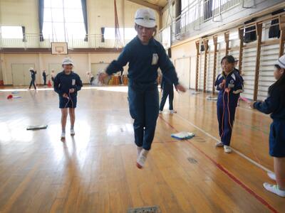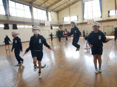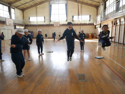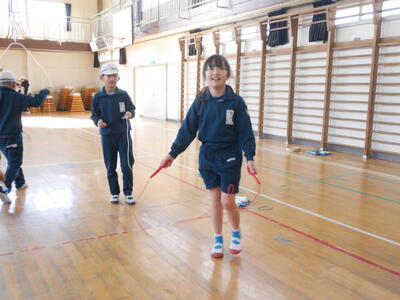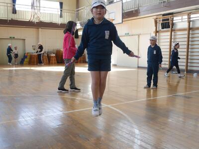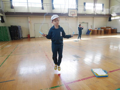 2025年2月5日 14時33分2年生が、体育でなわとびの練習をがんばっていました。
