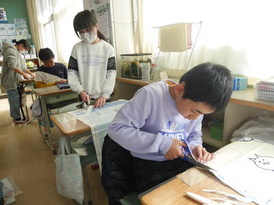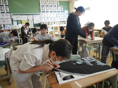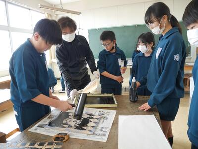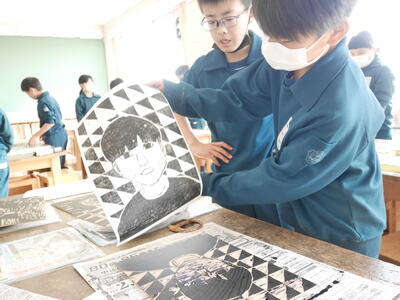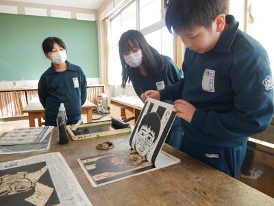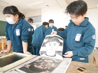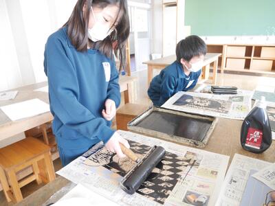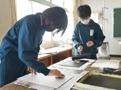 2025年2月10日 16時41分1組は図工で、版画に取り組んでいました。
