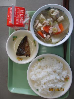 今日のこんだては、ごはん、牛乳、鯖の味噌煮、ぶた汁でした。