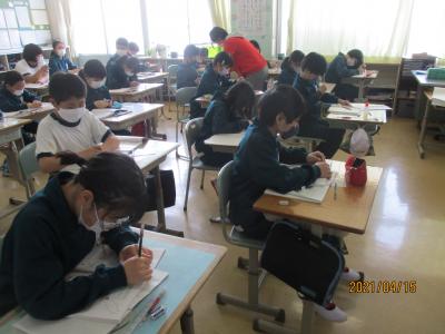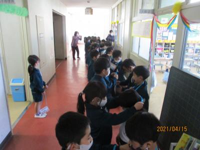 3校時目に一年生を迎える会を行いました。今日は、2年生が昨年育てたアサガオの種を、1年生にプレゼントしてくれました。2年生のみなさん、ありがとう。