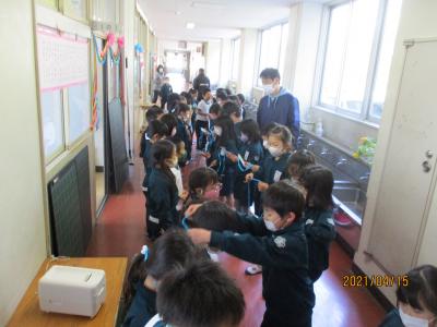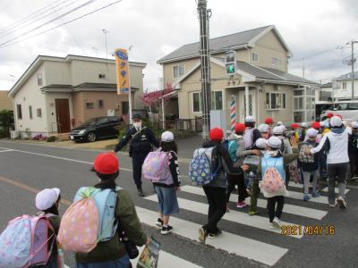 本日の下校は、登校班ごとの下校でした。各地区担当の教職員が危険箇所の確認を兼ねて、下校に付き添いました。