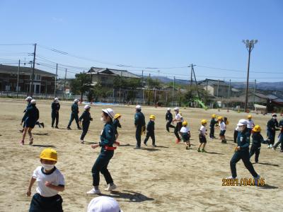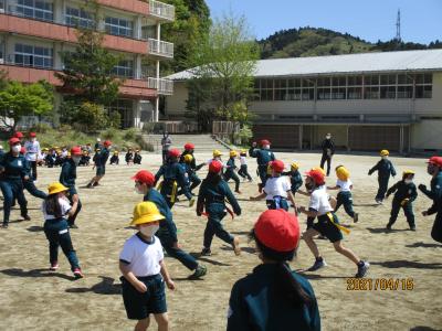 3校時目に、一年生を迎える会を行いました。6年が、しっぽ取りゲームをしてくれました。1年生は、たくさん取ろうと一生懸命に追いかけていました。とても楽しそうでした。