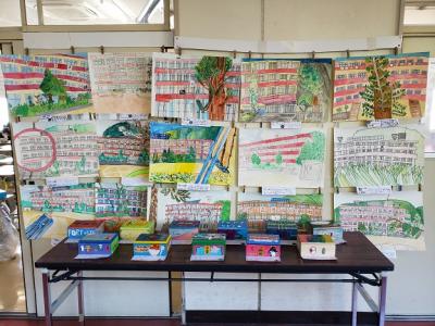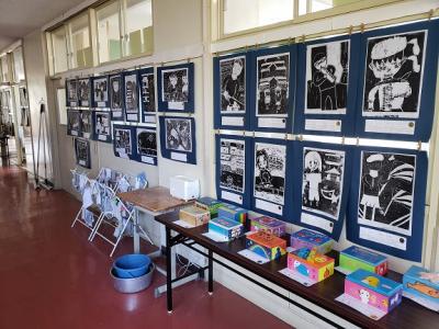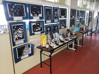図画工作作品(版画、絵画、紙粘土)や卒業制作等が展示されてまいす。