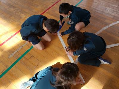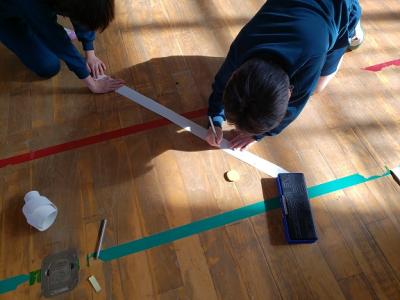 床の板目の幅を利用して6等分、7等分、8等分していきます。