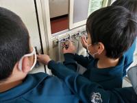 教室のドア、給食着の掛かっているフック、画鋲など様々な物を調べることができました。