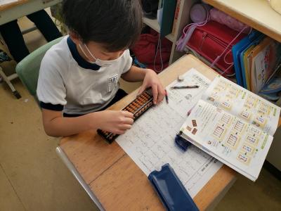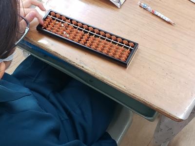 2021年2月12日 14時26分3年生ー算数科の授業で「そろばん」の学習を行いました。