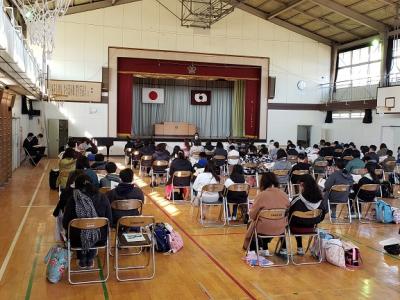 2021年2月19日 14時56分19日(金)体育館で、平第一中学校の入学説明会が行われました。