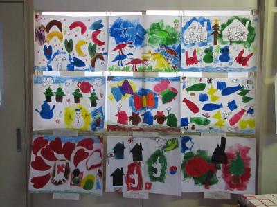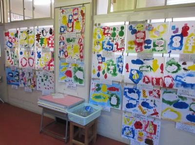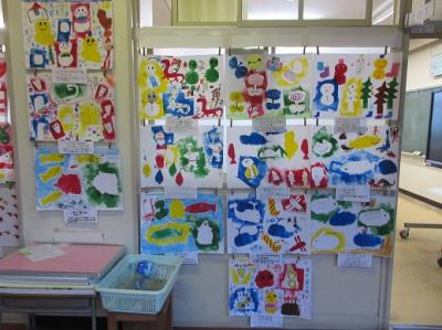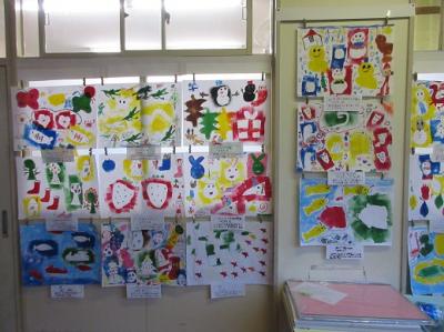 2021年2月22日 17時10分図画工作で2学期末に作成した版画を廊下に掲示しました。