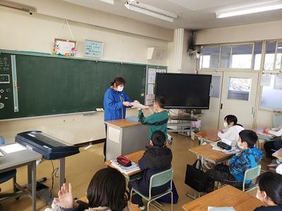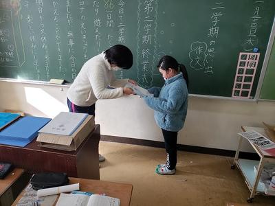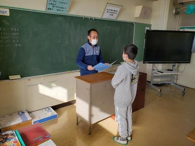 それぞれの担任が、児童一人一人に声をかけ手渡していきました。