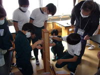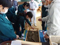 実際に砂を使って堤防を作り、そこに水を流すことで、川の流れ方や堤防の構造や崩れ方を見ることができました。