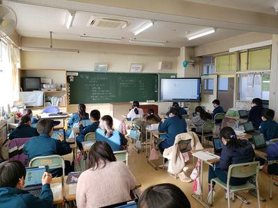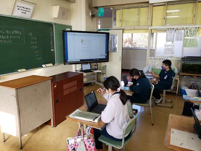 2020年12月15日 17時22分5年生、算数科「正多角形と円」の学習でプログラミング学習を行いました。