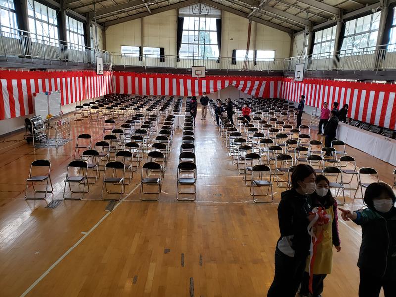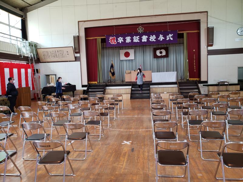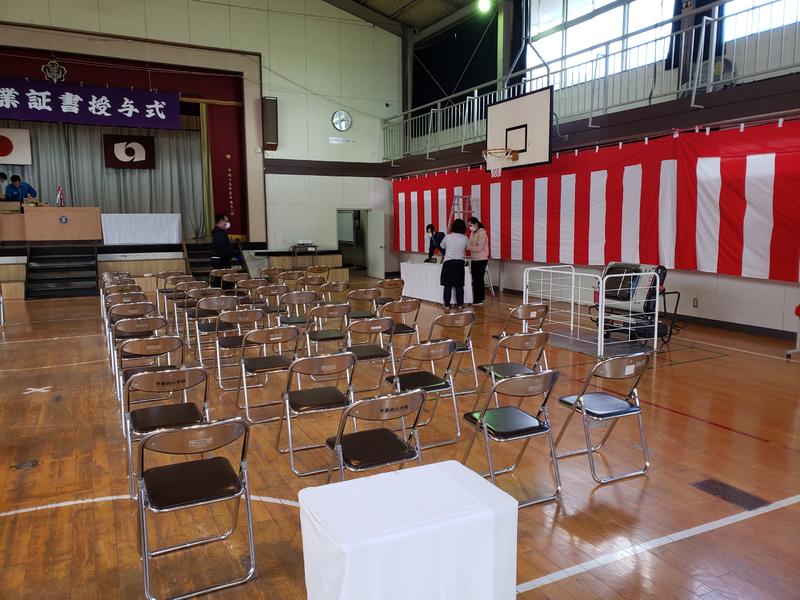 2020年3月17日 10時46分16日(月)、職員で卒業式に向けて体育館の式場作成を行いました。