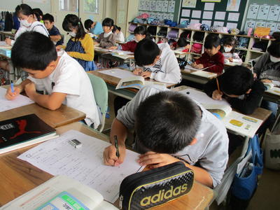 学校再開から10日がたちました。校庭での活動以外は通常通りにできる状況で、子どもたちにも普段の学校生活が戻っています。授業にも集中して取り組んでいます。11月16日(土)の学習発表会や学年ごとの行事も控え、楽しみにしています。