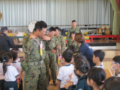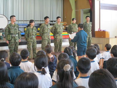 10月17日(木)から本校校庭で、災害支援(入浴支援)を行ってきた自衛隊(旭川)のみなさんが、11月2日(土)で任務を終え、本校を離れることになりました。本校では、受水槽への給水や登下校時の安全を確保するため、車の誘導等にも協力をいただきました。11月1日(金)に、全校生で、お礼の会を開き、感謝の気持ちを伝えました。