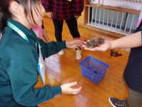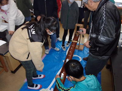2019年12月25日 08時55分12月18日(水)に1年生を招待して、生活科「おもちゃまつり」を行いました。水害の影響もあって、この時期の開催となってしまいました。しかし、2年生の子どもたちは、自分たちで作ったおもちゃを使って、工夫してゲームを考えて、遊びに来た1年生を楽しませようと頑張りました。1年生の子どもたちも、思い思いにゲームを楽しみ、大満足の様子でした。