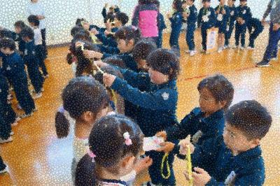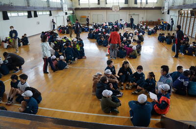 1年生は、2~6年生のお兄さん、お姉さんと一緒にゲームをしたり、プレゼントをもらったりして楽しく交流しました。元気いっぱいの1年生、これからの学校生活が楽しみです。