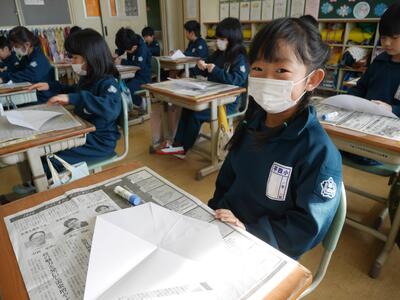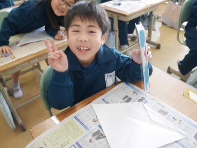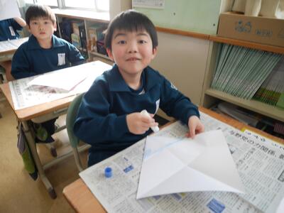 たこの形が出来上がったので、絵をかいたら完成です。たこあげ楽しみ~!