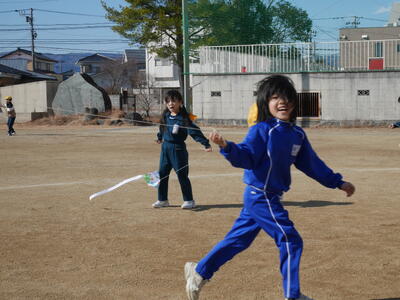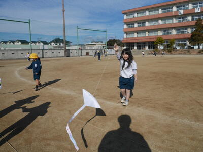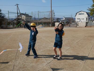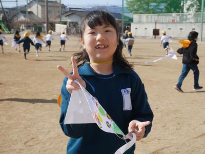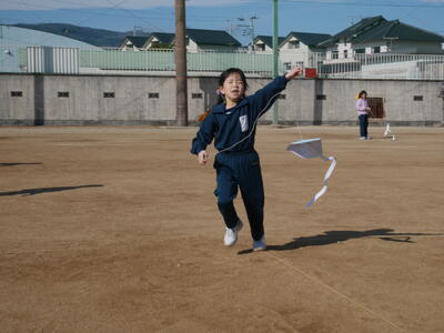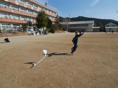 元気いっぱい、校庭を走り回りながら、たこあげすることができました。楽しかったね~!