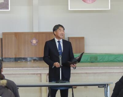 校長あいさつの後、学校から「入学前に身に付けさせたいこと」「入学までの準備」「保健関係について」「諸連絡」等の説明を行いました。また、交通安全母の会からは、登校班についての説明があり、最後に学用品販売を行いました。