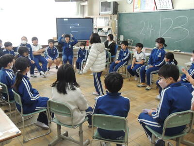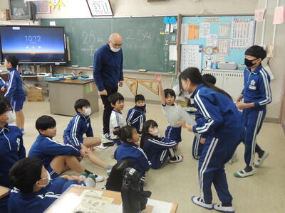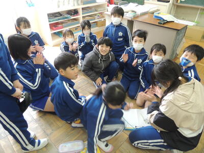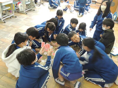 今回は、縦割り班活動に6年生は入らず、5年生が中心になって行いました。一人一人の子どもたちが6年生へ感謝の気持ちを込めて書いたメッセージカードを各縦割り班の5年生が確認しながら集めました。このカードは3月4日の「6年生へ送る会」で6年生へプレゼントされます。メッセージカード集めが終わった班は、じゃんけんゲームなどをして楽しみました。