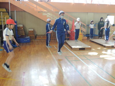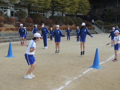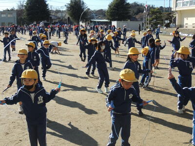 30日(木)大休憩に全校でのなわとび運動を行いました。各学年の場所で、自分のめあてに向かって一生懸命練習していました。6年生が1年生に跳び方を教えている姿も見られ、1年生もがんばってなわとび運動に取り組んでいました。