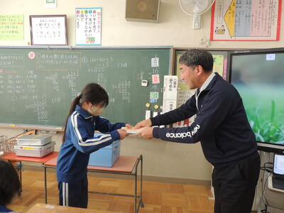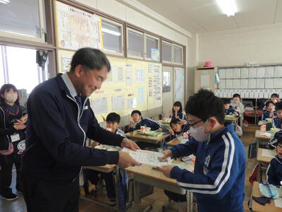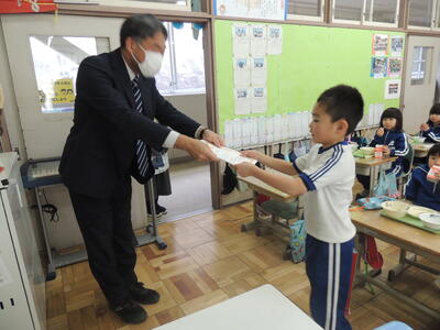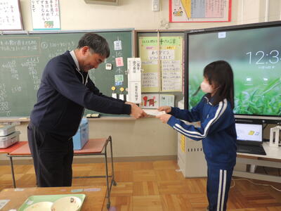 1/16(木)に続き、20(月)、21(火)、23(木)の給食の時間に12月分の読破賞表彰を行いました。今回は1年生、2年生、3年生、5年生の各クラスで表彰しました。