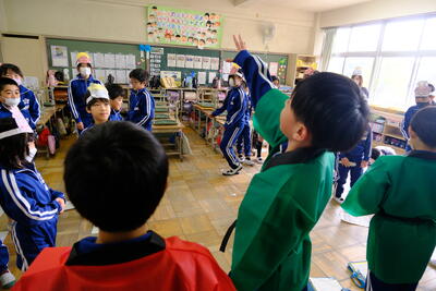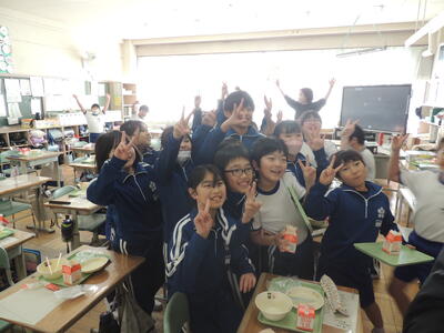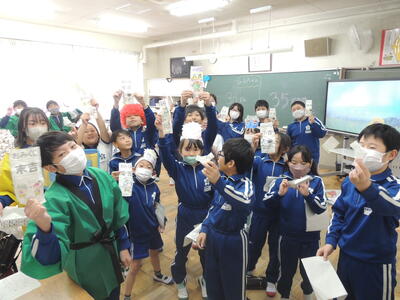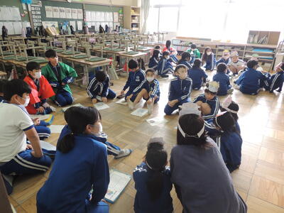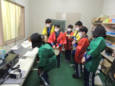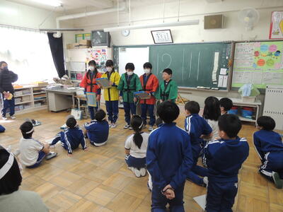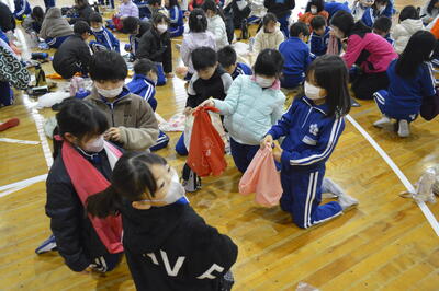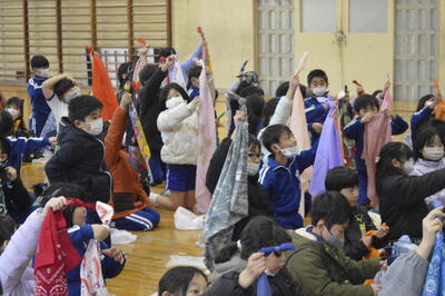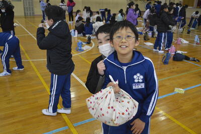 開会の後、各教室で縦割り班ごとに「追い出したい鬼」について発表し合い、5年生が豆の代わりにおみくじをまきました。一人一人、「鬼」を追い出して、新たな気持ちで「福」を呼び込む楽しい集会活動となりました。