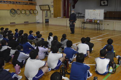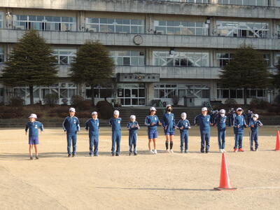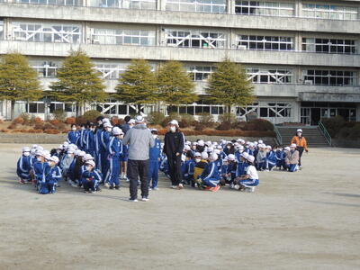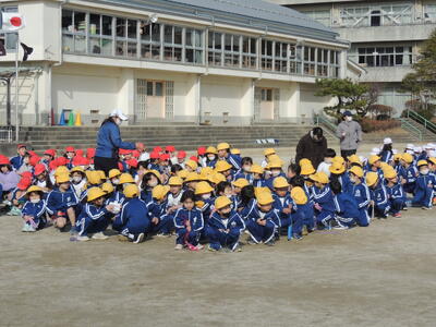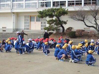 校庭で遊んでいた子も、教室で過ごしていた子も、非常ベルが鳴ると活動をやめて放送を聞き、落ち着いて避難することができました。地震が起きた後、校舎内で火災が発生し校庭に避難するという想定でしたが、短い時間であわてず素早く避難することができていました。