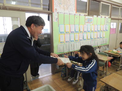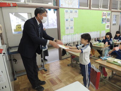 2月3日(月)と4日(火)の給食の時間に、1月分の読破賞の表彰を行いました。3学期も進んで読書に取り組んでいる姿がたくさん見られます。本を読むことで心が豊かになり、自分の世界が広がり、語彙力も豊富になります。2月、3月もたくさんの児童が本に親しめるとよいと思います。