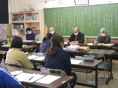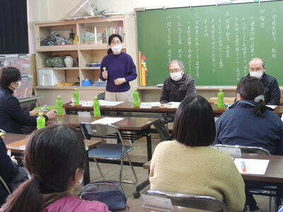 はじめに学校から「健康診断の結果から」「スポーツテストの結果から」「本校の児童の様子から」の報告が養護教諭、体育主任、各学年の担任からあり、その後、4名の校医の先生(学校医2名、学校歯科医1名、学校薬剤師1名)から指導助言をいただきました。