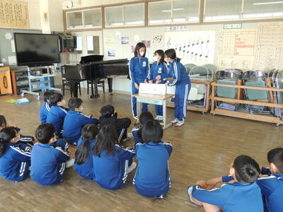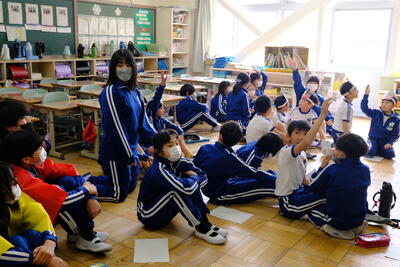 今日の大休憩は、校庭で3年生とドッジボールで遊び、体育館で2年生になわとびを一緒に行いながら楽しく運動をしました。理科室では4年生にわかりやすく勉強を教えていました。ポスター作りや窓拭き、遊具、階段手すりの清掃活動なども一生懸命行っています。