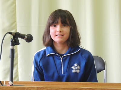 縦割り班の教室に移動した後、テレビ放送で集会委員会が開会のセレモニーを行いました。