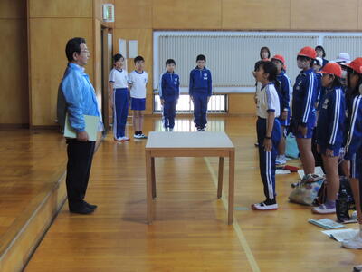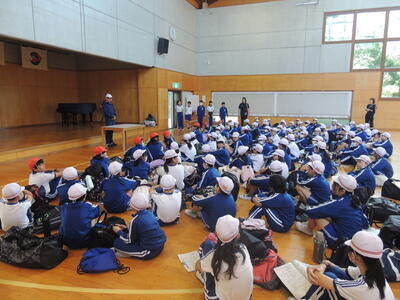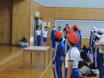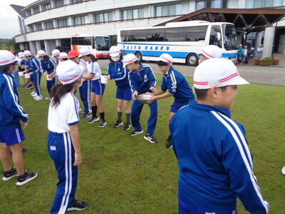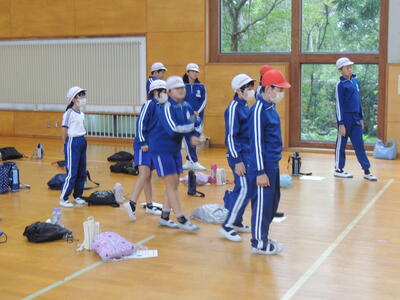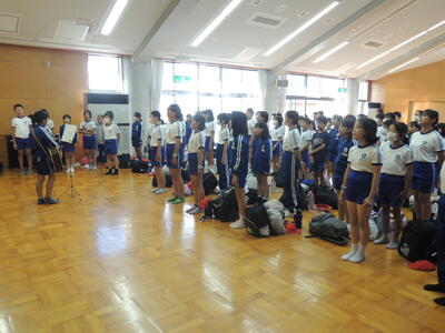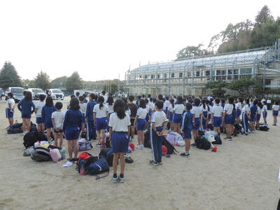 ◆学校に到着し、帰校式を行いました。集団生活のマナーやルールを守ることの大切さ、友達と協力し合い、助け合いながら活動することの楽しさ、素晴らしさを実感することのできた2日間になりました。保護者の皆様のご協力に感謝いたします。