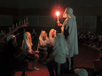 「火を迎える集い」では、火の神を迎え、火の守たちがキャンドルに友情・勇気・勤勉・感謝の火をともしました。「火を囲んでの交流」では、イベント係を中心に楽しいゲームや「マイムマイム」をみんなで踊って楽しく盛り上がりました。最後は心静かに「火を送る集い」を行い、感謝の気持ちを持ちながらキャンドルファイヤーを終えました。