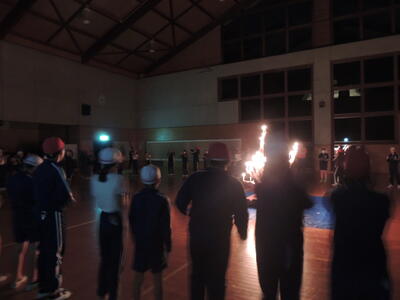 ◆夜は体育館でキャンドルファイヤーを行いました。