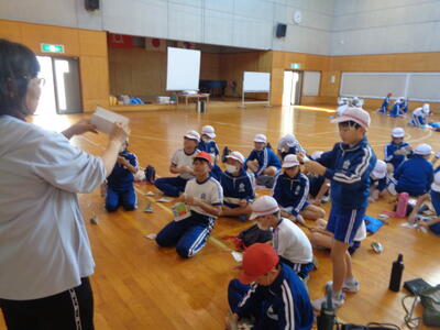 授業の初めにはビジョントレーニングとして矢印体操や形合わせゲームなどに取り組み、方向の感覚を身に付ける活動を行いました。その後、道案内ゲームの活動に入り、子どもたちは、わかりやすく説明しようと真剣に考えて道案内メモを書き、目印や曲がる方向を入れながら上手に道案内をすることができました。終わった後には「もっとこうすればよかった」というような振り返りもしっかりできました。