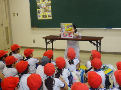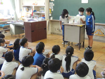 29日(火)の大休憩に、図書ボランティア「いちごみるく」の方と、図書委員会とその友達の児童が一緒になって読み聞かせを行いました。ボランティアの方と子どもたちがうまくコラボして、楽しい読み聞かせになりました。