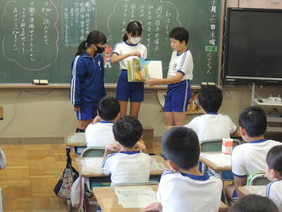 17日(木)、朝の時間に図書委員による3年生への読み聞かせが行われました。それぞれの学級で上手に読み聞かせをすることができ、3年生も集中して聞いていました。