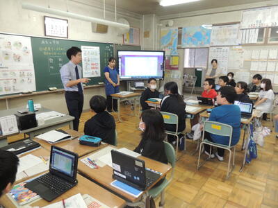 18日(金)の5校時に、6年3組で体育科(保健)「病気の予防」の研究授業が行われました。