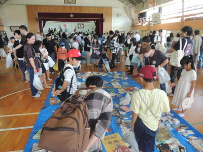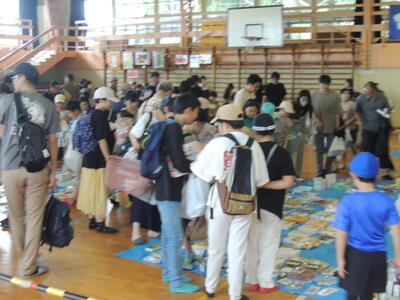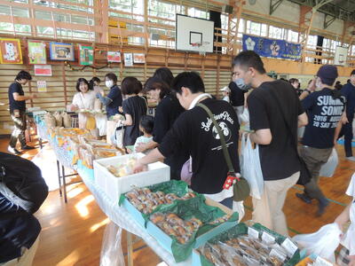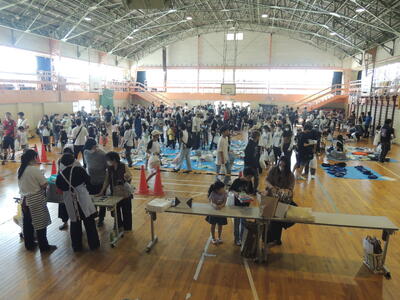 バザーは体育館で行い、PTA本部の方が案内、販売、運営等を行いました。クッキーやパン、ドーナッツ、クレープ、お米、おにぎりなどの食品販売や、各家庭から提供していただいた日用品等の販売、ブレスレットやスライムづくりの体験コーナーなどに多くの方に来ていただきました。