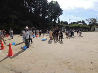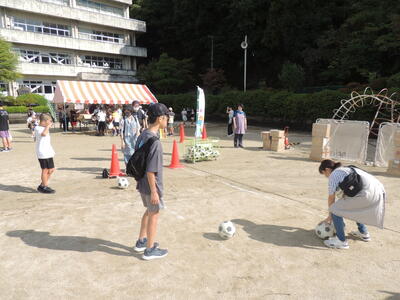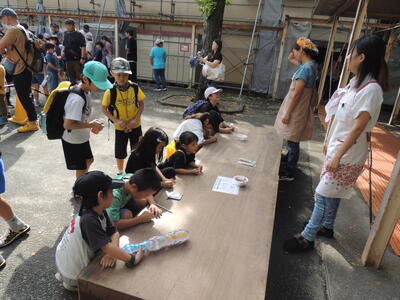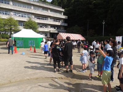 各学年の模擬店では、1・2年生がスーパーボールすくい、当てくじ、射的、かたぬきなど、3・4年生はドリンク類やお菓子販売、5・6年生はストラックアウトやキックターゲットなどを行い、子どもたちも喜んで参加していました。