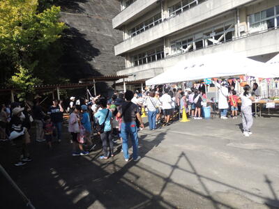 19日(土)の午前中、気持ちの良い晴天の中、PTAバザー・模擬店が開催されました。たくさんの子どもたち・保護者の方々等に来ていただき、バザー、模擬店とも盛況の中実施することができました。