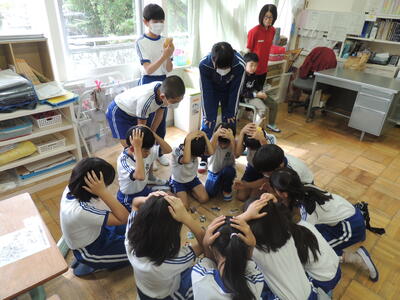 23日(水)の大休憩に、縦割り班で「班のみんなで遊ぼう会」の3回目が行われました。